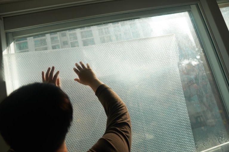 뽁뽁이(에어캡) 안에 있는 공기층이 단열 효과를 내요. 유리와 실내 사이에 공기층을 만드는 거죠.