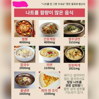 - 라면 국물 남기기 → 혈압 5mmHg 감소 효과