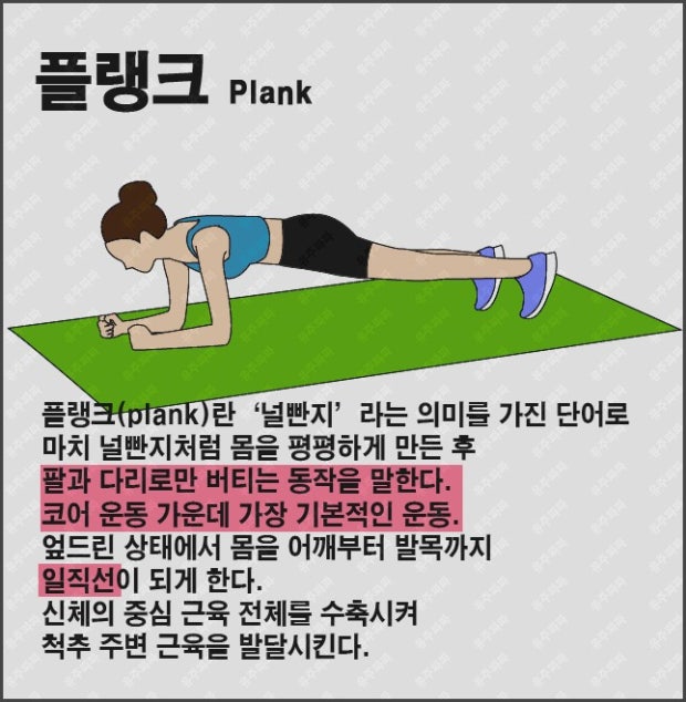 - 플랭크 자세에서 팔꿈치를 번갈아 들어올리기